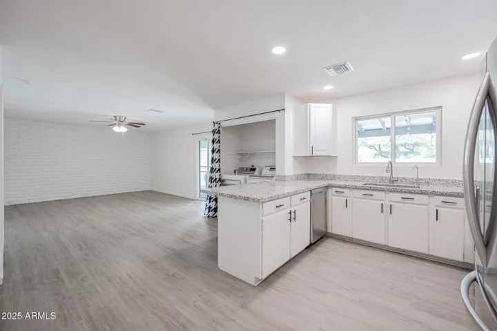 Gorgeous 3/2 Phoenix Home with Pool! This spacious home features wood-plank style and carpet flooring, a bright living and family room filled with natural light, and a modern kitchen with stainless steel appliances and breakfast bar. The master suite offers an enclosed dual-sink bath and oversized walk-in closet, while cozy rooms and updated baths add comfort. Enjoy a covered patio, private pool, outdoor fireplace, grassy backyard, and extra storage. Biweekly landscaping and weekly pool service are included in monthly rent. Includes washer/dryer and a 2-car garage. 210w electric car charger outlet in the garage. Located near top shopping, dining, and major roadways – your perfect Phoenix rental awaits!