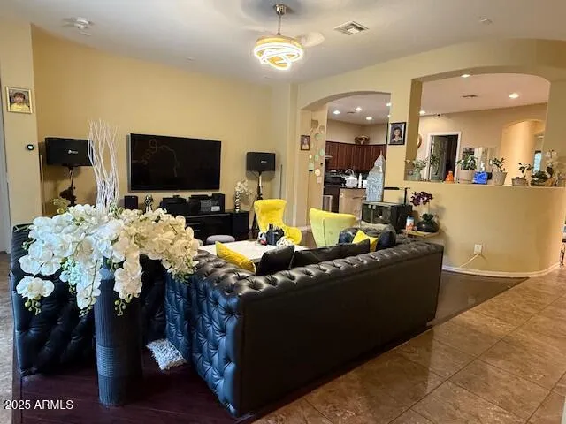 Do not miss the opportunity to own this ready to live-in property. The seller will leave about 95% of what you saw. But if you do not need what you saw, the sellers can remove them. House is located in a well developed area, 4 large sized BR, plus a den, a large separate living room and dining room, Master Bedroom is a split floor plan with master bath having double sinks. Garden Tub in the center, Separate Shower. Huge Walk-in closet and plenty of elbow room. Large kitchen with granite counter top and stainless steel appliance, filtration water. Soft water system. Washer/Dryer, 3-Car Tandem garage with a service door, Walk out to the covered patio, you will enjoy a large, nice and clean swimming pool. Lots of paver. RV gate. Dual A/C units & so much more. EZ access to loop 303 and I10.