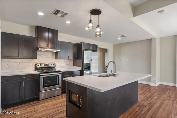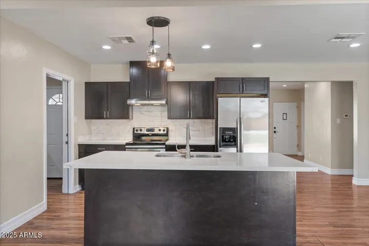 Central Corridor, Madison Schools, Large Irrigated Lot and a Low Traffic Dead End Street.. Expanded and updated home featuring newer island kitchen with quartz counters and stainless appliances. Attached laundry room/pantry with full size washer & dryer. Dining area off the kitchen. Large living and family rooms. Primary bedroom with dual closets and dressing area, custom tile shower in primary bath, large double sink vanity. Guest bathroom with custom tiled tub/shower. Spacious front porch perect for enjoying coffee and visiting with neighbors. Mature trees provide lots of shade! SRP irrigation for the yard with plenty of space to gather and play. Close to great restaurants, 51 HWY and easy access to downtown and airport. Non-smoking property. Small dog with approval, deposit & pet rent.