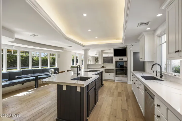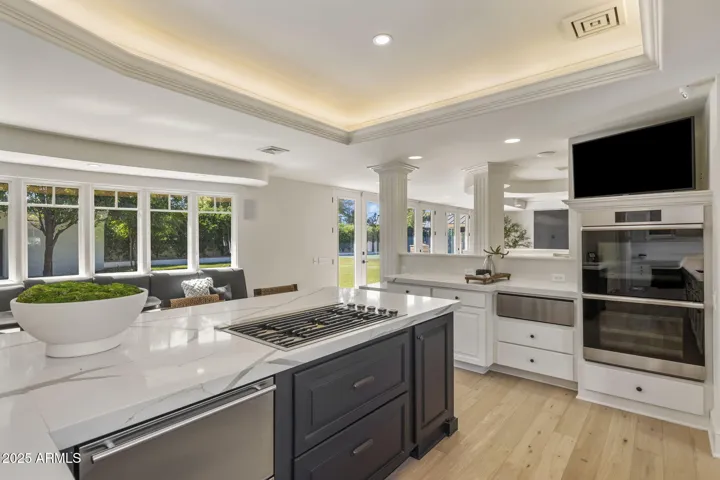 Inside light and volume harmonize beautifully. The professional chef’s kitchen—anchored by a full Dacor appliance suite—flows effortlessly into a grand family room that inspires connection and comfort. The formal dining and living rooms provide the perfect setting for memorable celebrations and intimate evenings alike.